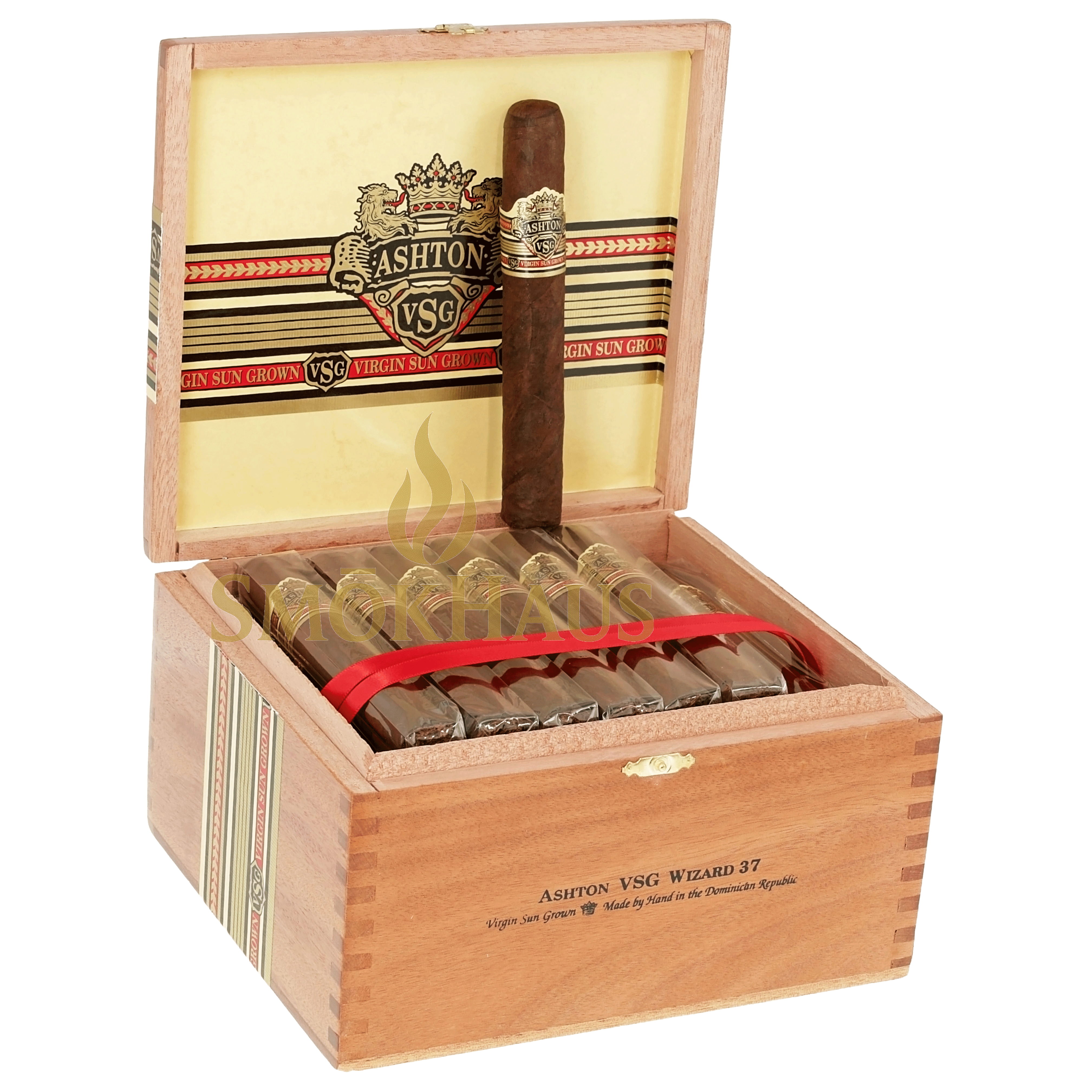 Ashton VSG is crafted from carefully aged Dominican tobaccos matured for four to five years, forming a blend built for depth, balance, and longevity. The cigar is finished with a distinctive wrapper grown on a private estate in Ecuador, harvested from higher primings and slowly matured beneath natural cloud cover to develop richness, texture, and concentrated flavor. Precision construction ensures a steady burn and a firm, satisfying draw that allows the blend to unfold with control. Medium to full in strength, it opens with bold notes of dark cocoa and espresso, followed by layers of cedar, black pepper, and subtle sweetness that build steadily through the middle of the smoke. The finish is long and polished, leaving lingering impressions of spice, roasted coffee, and refined tobacco character. This cigar pairs exceptionally well with aged bourbon, single malt scotch, or a bold espresso. Ashton VSG remains one of the most sought after cigars in the market, respected for its consistency, richness, and enduring reputation for excellence.
