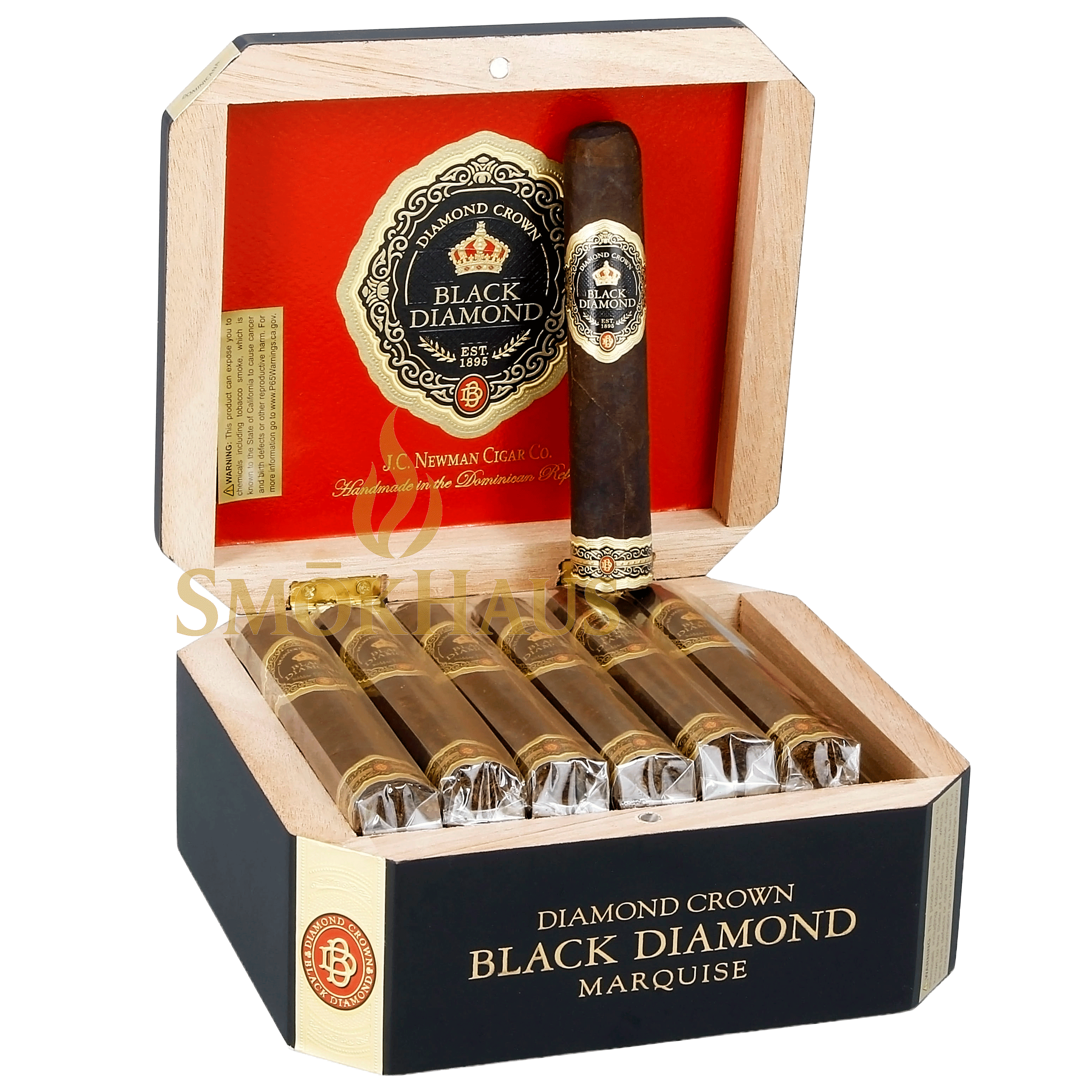 Diamond Crown Black Diamond was crafted as a bold extension of the Diamond Crown legacy, built from meticulously aged tobaccos selected for richness, depth, and refinement. The cigar is finished with a sun grown Connecticut wrapper that brings structure and intensity, paired with premium Dominican binder and filler tobaccos sourced exclusively from the Fuente family farms. Careful aging and precise construction deliver a steady burn and smooth draw that allow the blend to unfold with control and clarity. Medium to full in strength, it opens with leathery depth and dark chocolate richness, followed by layers of cedar, roasted espresso, and subtle natural sweetness that develop steadily through the smoke. The finish is long and polished, leaving lingering impressions of cocoa, wood, and refined tobacco character. This cigar pairs exceptionally well with aged cognac, small batch bourbon, or a rich espresso. Diamond Crown Black Diamond stands as a luxurious and composed cigar, respected for its bold profile, refined balance, and place among the most distinguished offerings in the Diamond Crown line.